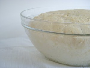 In a large bowl, whisk the flour and salt together. Add the yeast mixture and stir until a soft dough forms. If the dough is too dry, add a little extra water, 1 tablespoon at a time. If the dough is too sticky, add extra flour, 1 tablespoon at a time. Transfer the dough to a floured work surface. Knead the dough until it becomes smooth. Drizzle the inside of a clean bowl with olive oil. Put the dough in the bowl and cover loosely with plastic wrap or a damp kitchen towel. Set the bowl in a warm place, until the dough has doubled in size, about 2 hours.