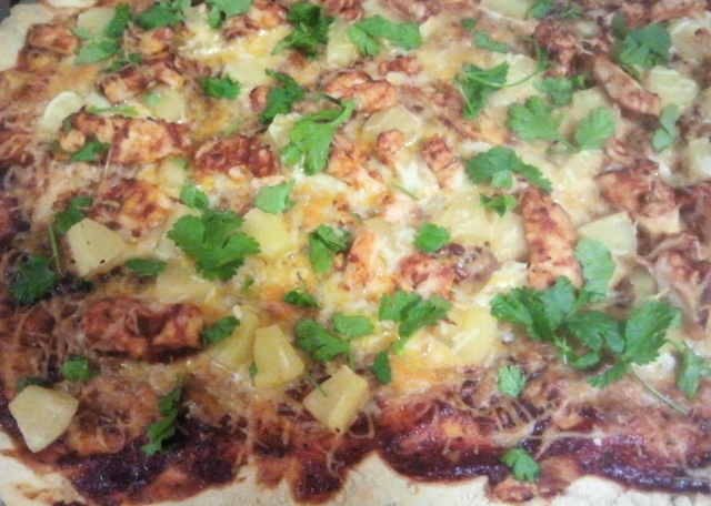 Then top with cheese and pineapple. Bake in the oven at 400 degrees for 18 min.
