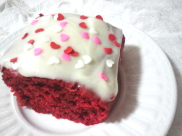 I have really wanted to try some fun and creative recipes for Valentines this year… There are so many good ones on Pinterest. BUT sadly I have not gotten around to it. I did make this cake and it was really good and easy to make. I topped it with some Valentines sprinkles to be more festive. Anything to make the kids happy right?