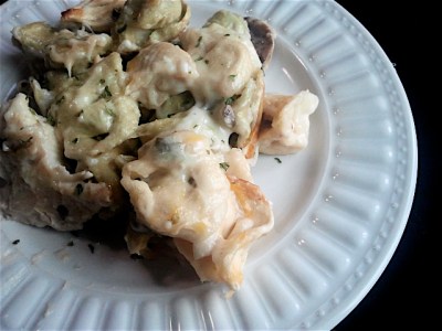 I had a hard time getting a pretty picture of this because let’s face it, it doesn’t look that pretty. But don’t you worry it is delicious. My husband is not a big tortellini fan and he loved this, as did my kids. It was really simple, I just used a package of fresh Tortellini from Costco. You can also mix this up a little by adding different vegetables if you prefer.