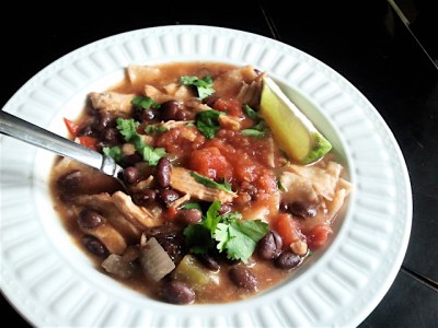 Mix cornmeal with a small amount of water. Pour into the soup, then simmer for an additional 30 minutes. Check seasonings, adding more if needed—add more chili powder if it needs more spice, and be sure not to undersalt. Turn off heat and allow to sit for 15 to 20 minutes before serving. Five minutes before serving, gently stir in tortilla strips.