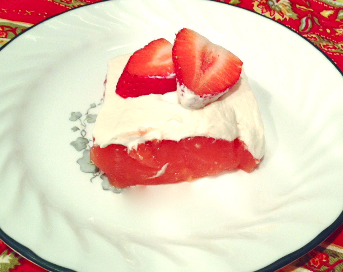 1 large box of flavored Jello (strawberry or Raspberry)