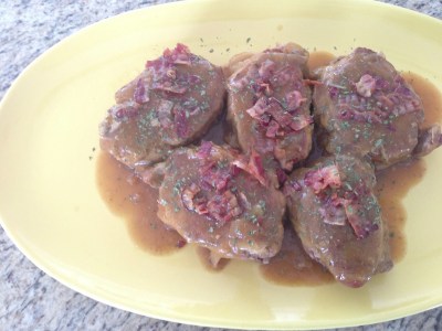 5 slices bacon, chopped- 6 bone-in pork loin chops, about 3/4-inch thick