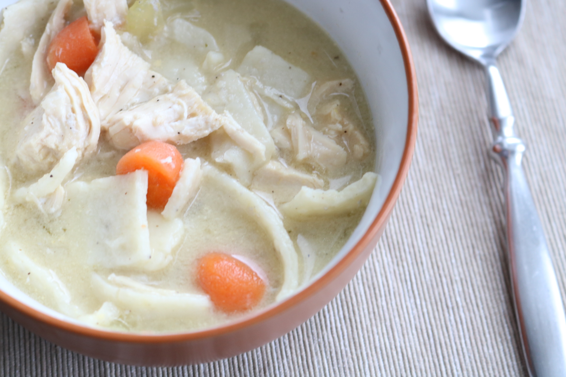 I have been making it for my family for a long time, and it’s our favorite. It’s creamy but not thick. It’s full of flavor, and the homemade noodles are out of this world. And for some reason, food always tastes better when someone else makes it for you.