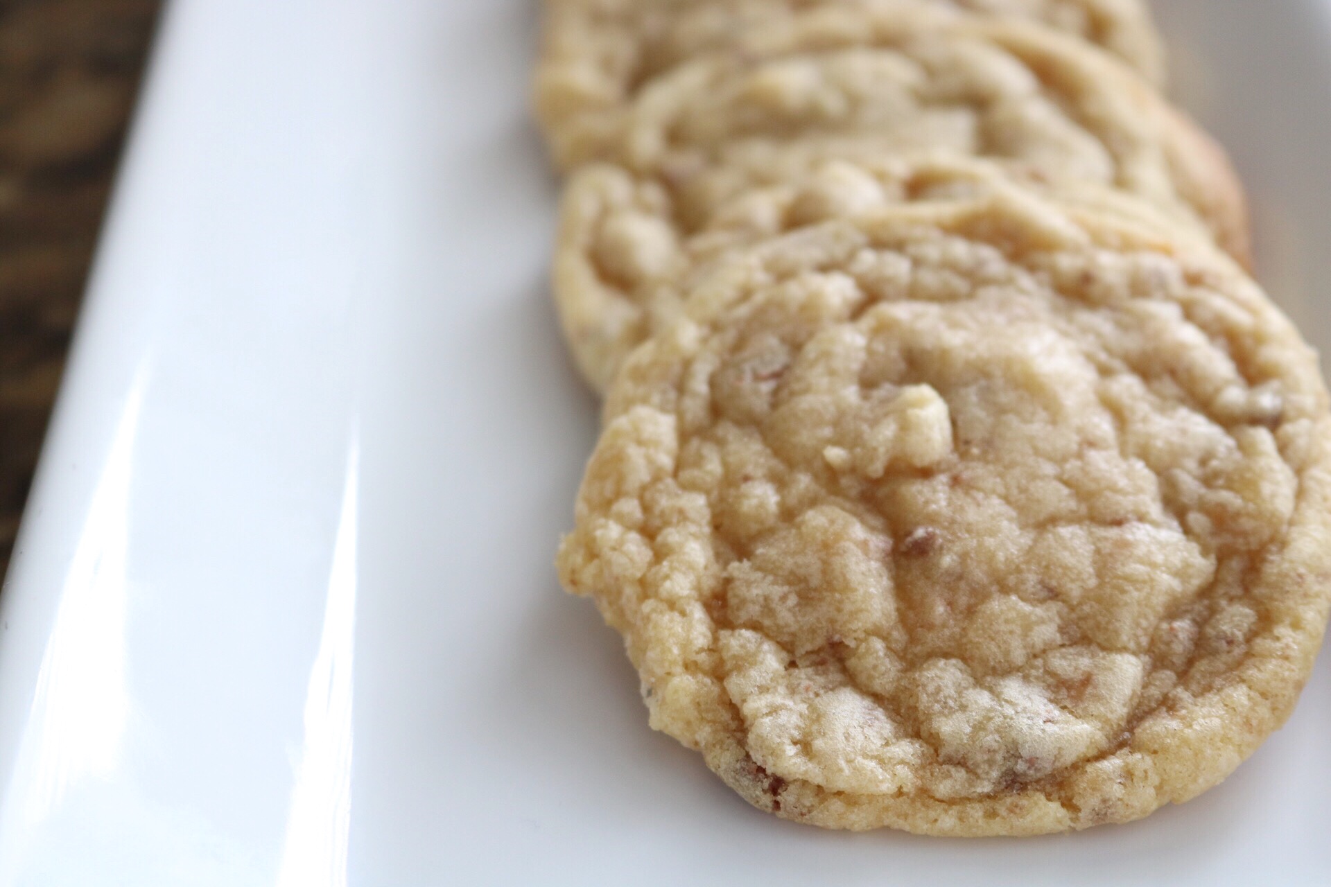 Preheat the oven to 350°F. Lightly grease a cookie sheet, scoop the cookie dough into about 1-inch balls. Place the dough about 2 inches apart on the cookie sheets. Bake for 10-12 minutes, until the edges are just starting to brown. Remove from oven and let the cookies cool for a few minutes on the baking sheet.