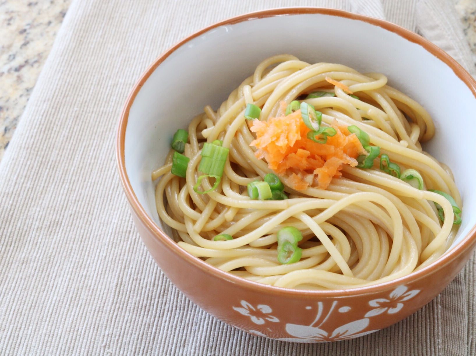 Whisk all the above ingredients together, except noodles and green onions.