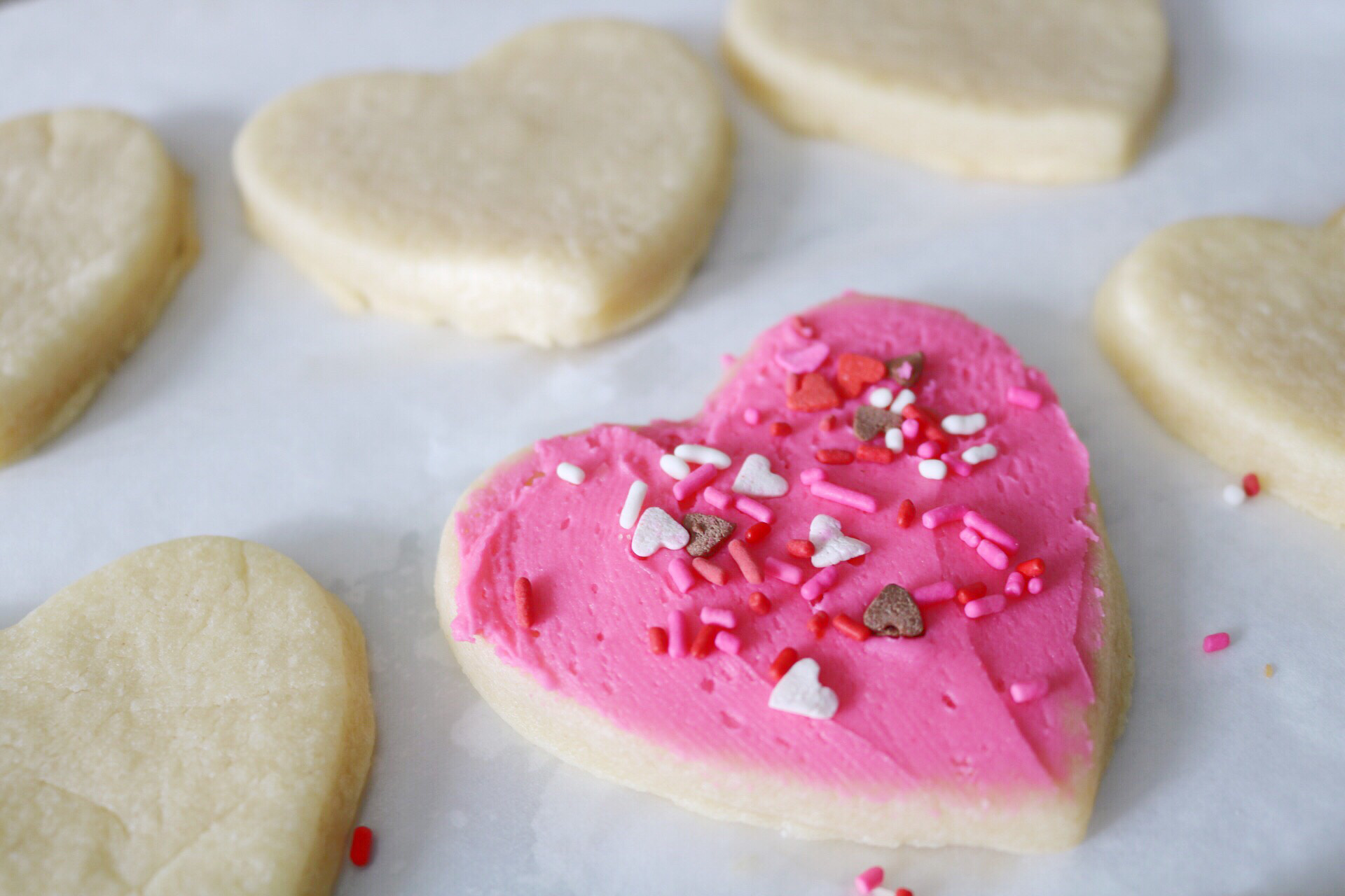 This is my all time favorite cookie! I love making these for one of my favorite holidays…Valentines!! I like to make the cut outs on the thicker side, and make sure not to overbake!