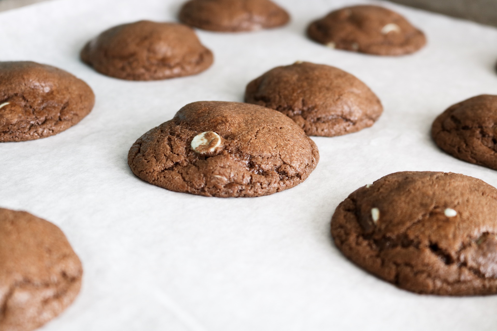 In a medium bowl, whisk together flour, baking soda, salt, and cocoa. Set aside.