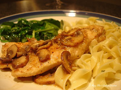 {Chicken with a lemon sauce served over noodles}